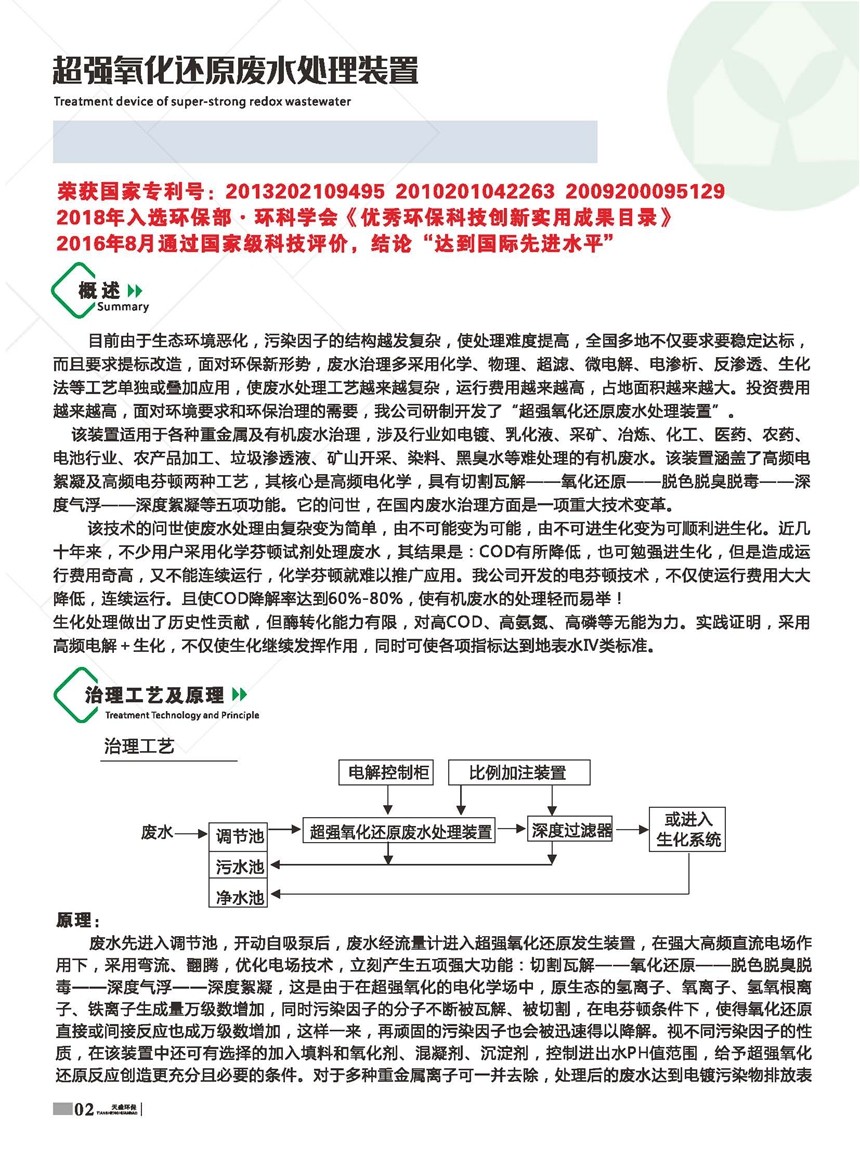 超強(qiáng)氧化還原廢水處理裝置(CYH法)處理各種有機(jī)廢水、各種重金屬廢水